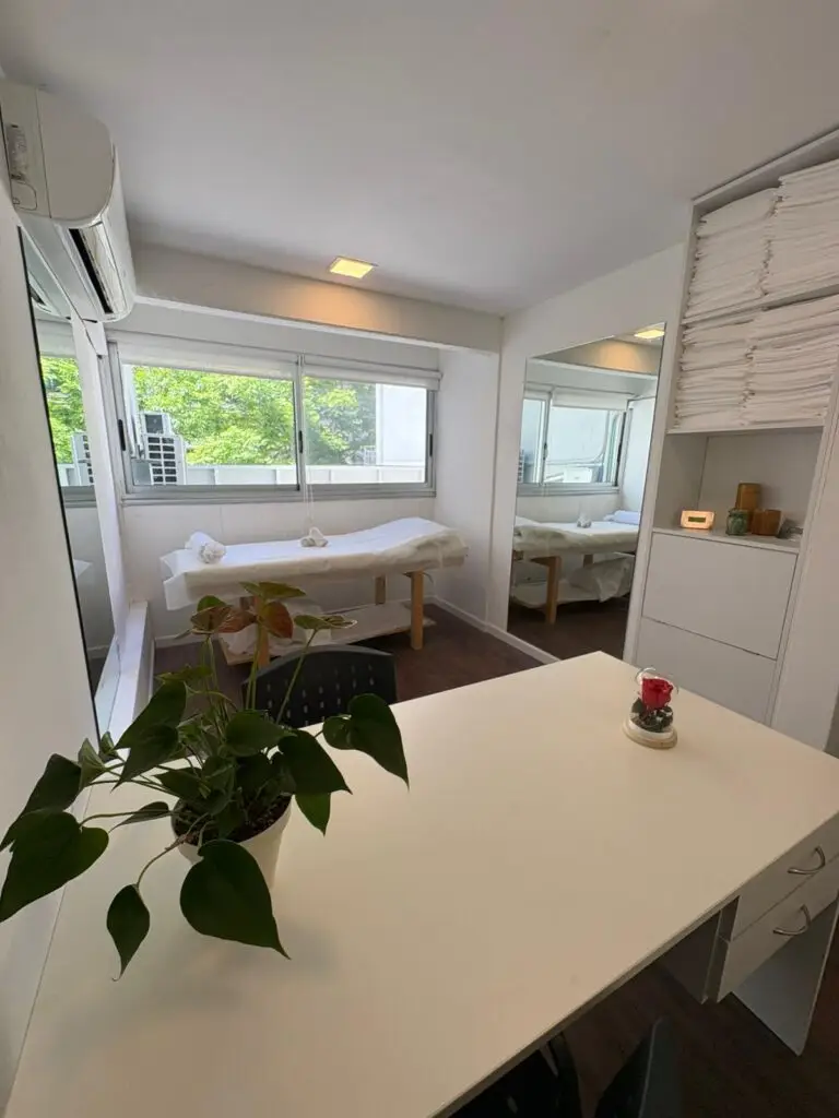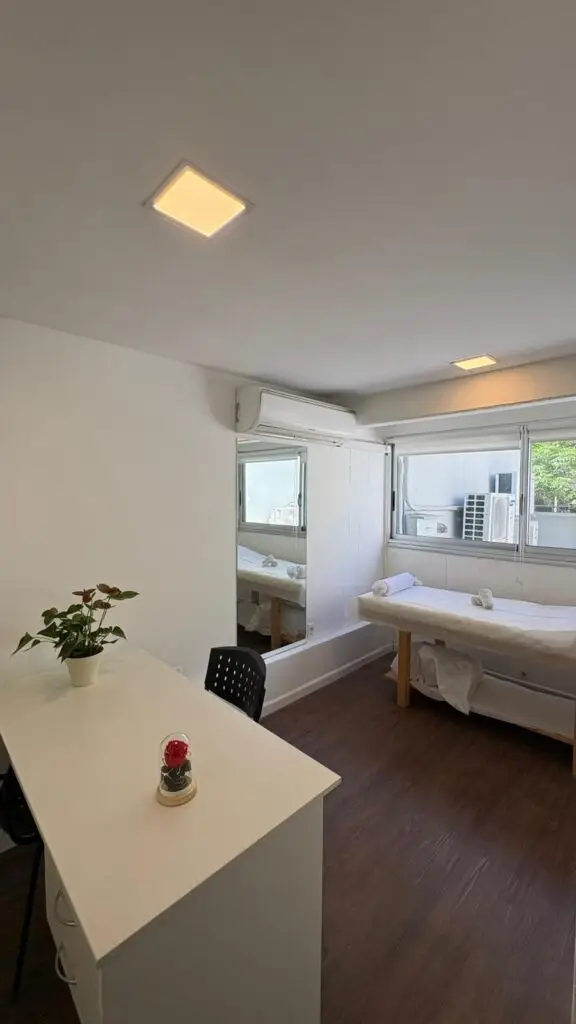 Disponemos de cuatro espacios equipados con aire acondicionado, parlantes, cama de masajes y una acogedora sala de espera, todo diseñado para que brindes tus servicios en un ambiente profesional, cómodo y tranquilo.